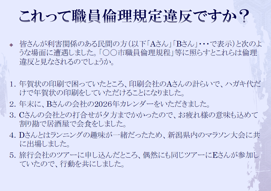 自治体コンプライアンス研修(公務員倫理研修)